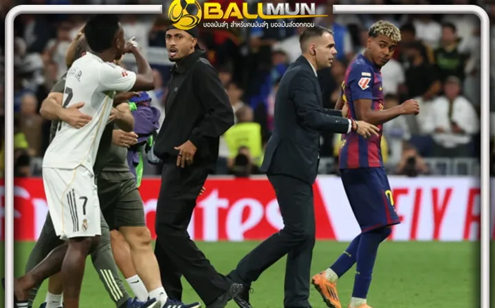 ความตึงเครียดปะทุขึ้นหลังจบศึก เอล กลาซิโก้ ที่ เรอัล มาดริด เอาชนะ บาร์เซโลน่า 2-1 เมื่อ ลามีน ยามาล ปีกดาวรุ่งวัย 18 ปีของทีมเยือน มีปากเสียงกับ วินิซิอุส จูเนียร์ แข้งบราซิลของเจ้าถิ่น สื่อสเปนอย่าง มาร์ก้า รายงานว่า จุดเริ่มต้นมาจากการที่ ดานี่ คาร์บาฆาล แบ็คขวาของมาดริด เข้ามาเตือนยามาลหลังจบเกมว่า "หากพูดมากเกินไป นายต้องยอมรับผลที่ตามมา" ซึ่งอาจหมายถึงบทสัมภาษณ์ก่อนเกมที่ยามาลกล่าวหามาดริดซื้อกรรมการ ยามาล ที่โกรธจัดเริ่มท้าทายจากระยะไกล พร้อมตะโกนว่า "ไปเจอกันข้างนอก" ขณะที่เพื่อนร่วมทีมพยายามกั้นไว้ เมื่อวินิซิอุสเดินผ่านเพื่อเข้าอุโมงค์ เขาได้ตอบโต้กลับว่า "นายพูดมากเกินไป"